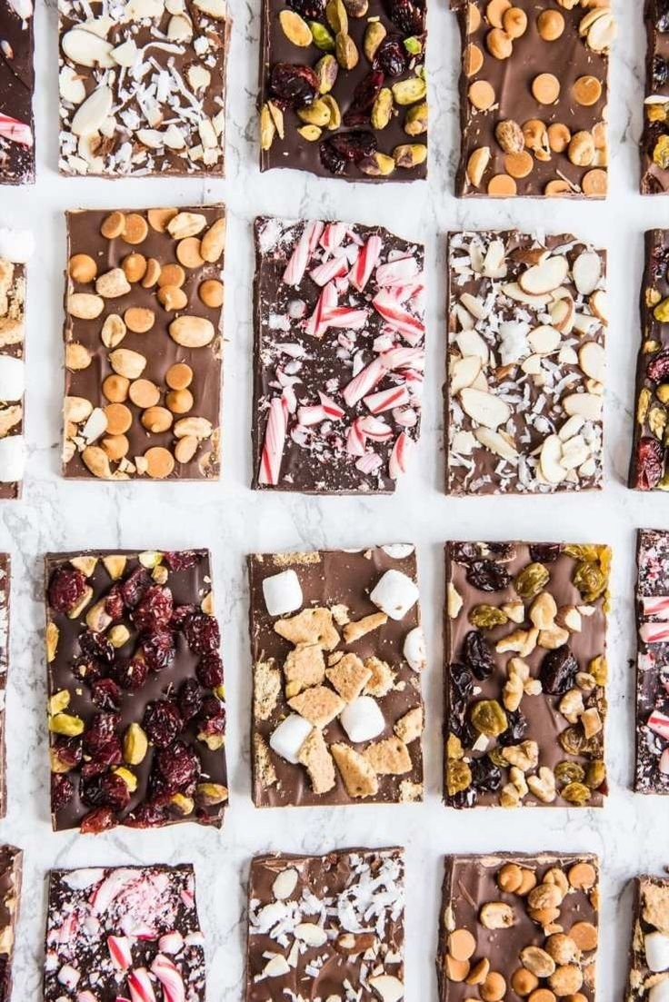 - Socola kết hợp với các loại hạt, hoa quả khác nhau.
