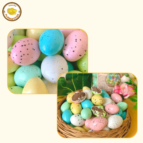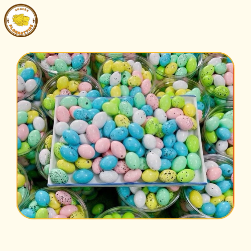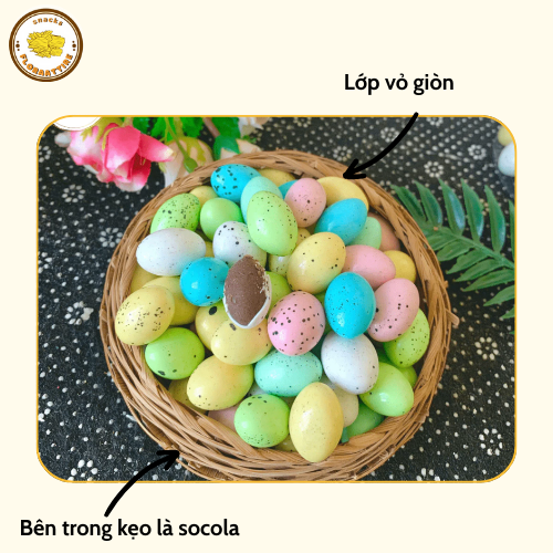 Viên kẹo bé bé nhiều màu sắc vô cùng đẹp mắt. Cắn vào bên ngoài lớp vỏ giòn thì thấy bên trong viên kẹo là socola mát rượi tan trong miệng siêu siêu ngon luôn ạ.