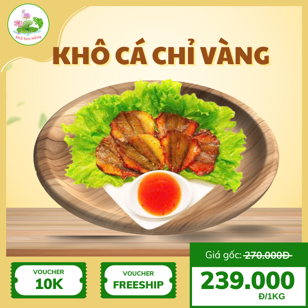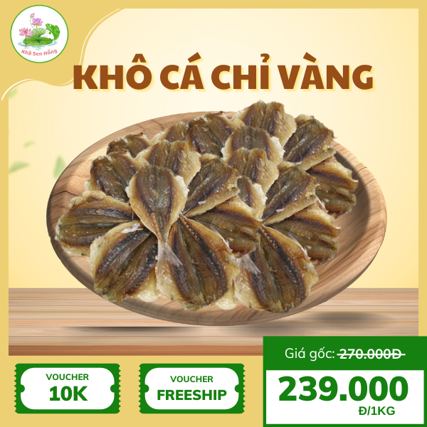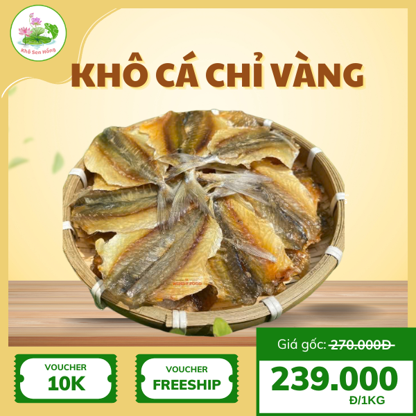 Khô cá chỉ vàng là món đặc sản biển nổi tiếng, được yêu thích nhờ vị ngọt tự nhiên, thịt cá mềm và thơm lừng khi chế biến. Cá chỉ vàng được chọn lựa từ những con cá tươi ngon, sau đó được sơ chế kỹ càng, tẩm ướp với muối, đường, ớt và các gia vị tự nhiên. Cá được phơi khô dưới ánh nắng từ 1-2 ngày, vừa giữ được độ săn chắc, vừa không làm mất đi hương vị đặc trưng của cá biển.