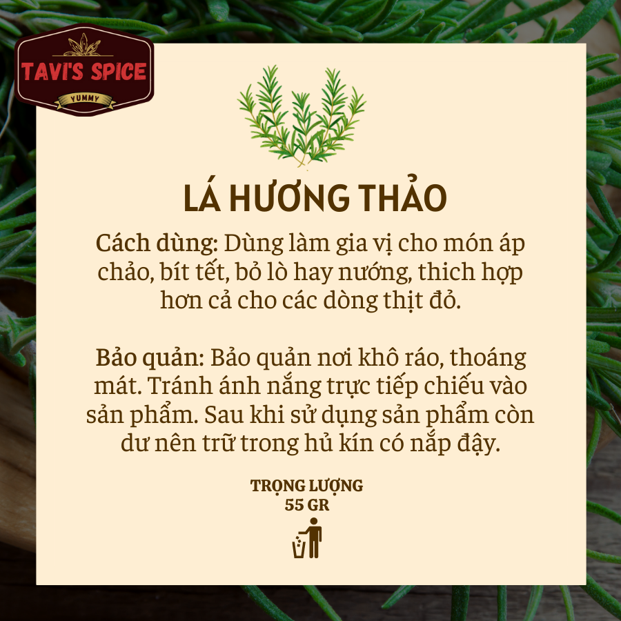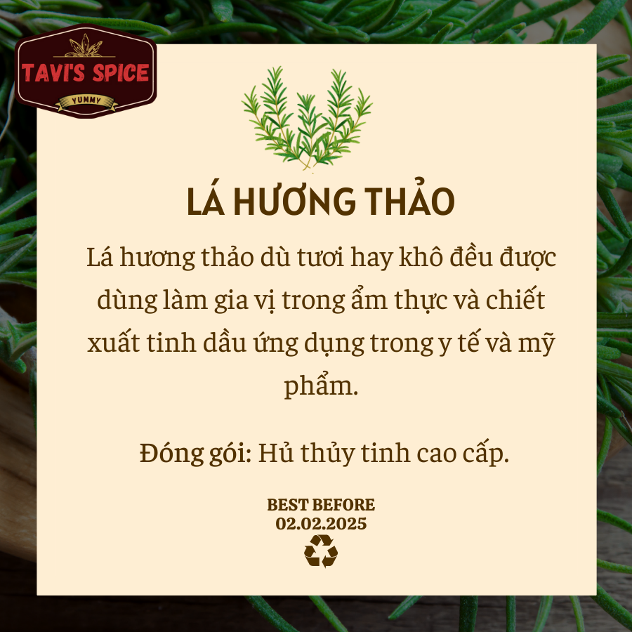 Ngoài ra lá hương thảo được sử dụng cho các loại thịt trắng như thịt gà, thịt lợn và cá hồi giúp thịt thơm ngon và đậm đà hương vị .