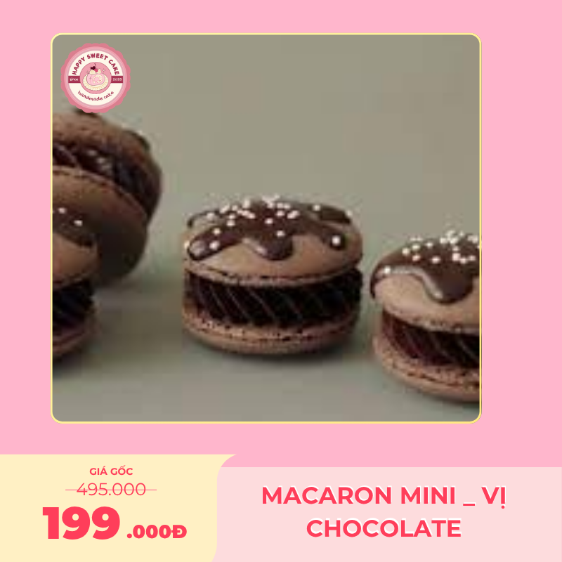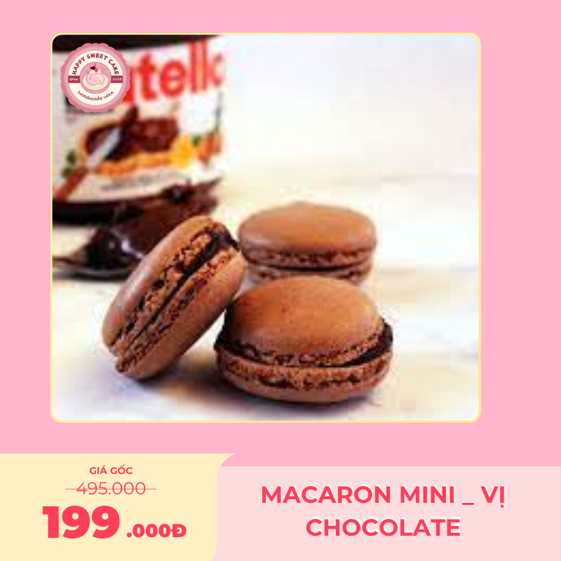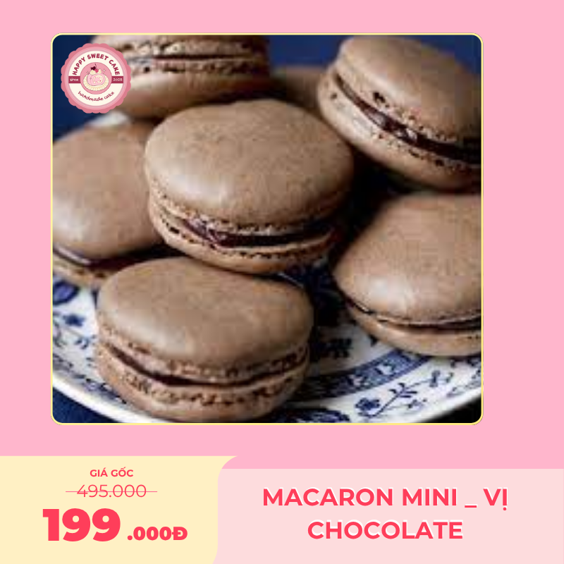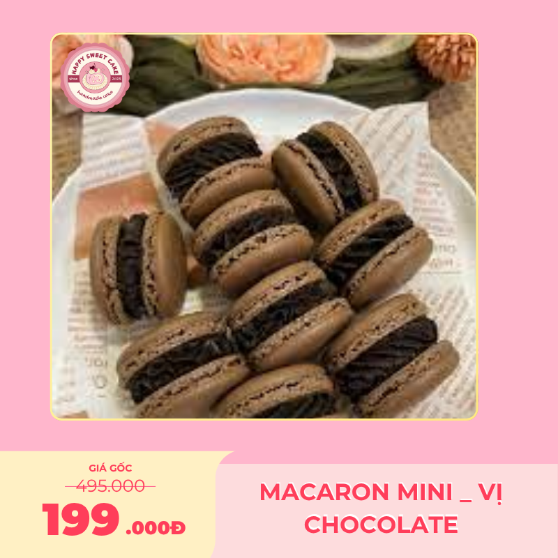 Dành cho tín đồ chocolate, macaron mini vị chocolate là sự kết hợp tinh tế giữa lớp vỏ bánh giòn nhẹ, mềm mịn bên trong và phần nhân chocolate nguyên chất, đậm vị nhưng không gắt. Mỗi chiếc bánh là một trải nghiệm ngọt ngào nhưng đầy cá tính, khiến bạn muốn ăn mãi không thôi.