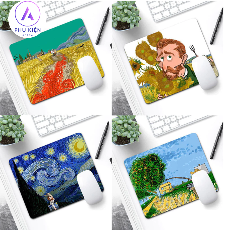 🎨Miếng Lót Chuột Lockedge Nhỏ – Tranh Van Gogh – Cao Su Chống Trượt – Phù Hợp Laptop/Văn Phòng