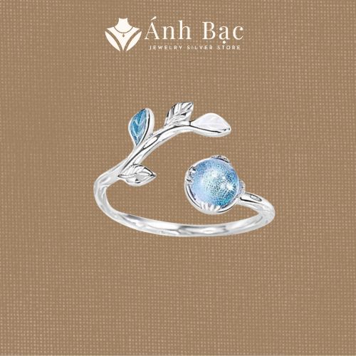 Nhẫn Ánh Bạc S925 Đính Lá Pha Lê Xanh