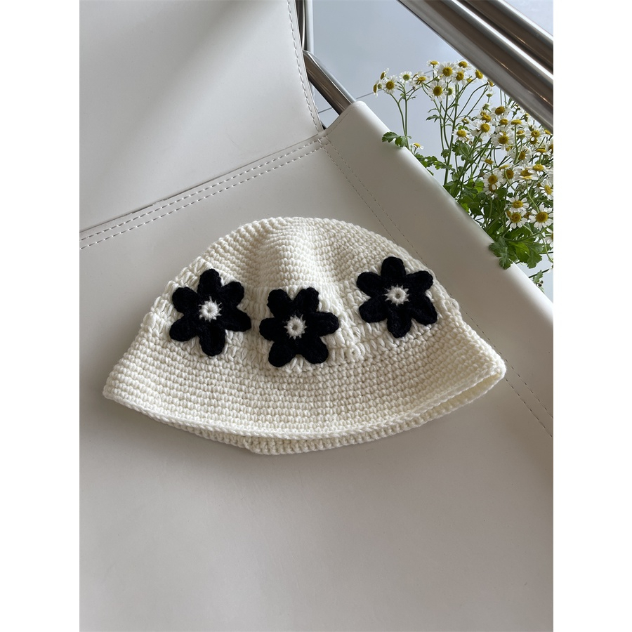 Nón Len Móc Thêu 3 Hoa Trắng Nữ Tính
