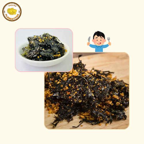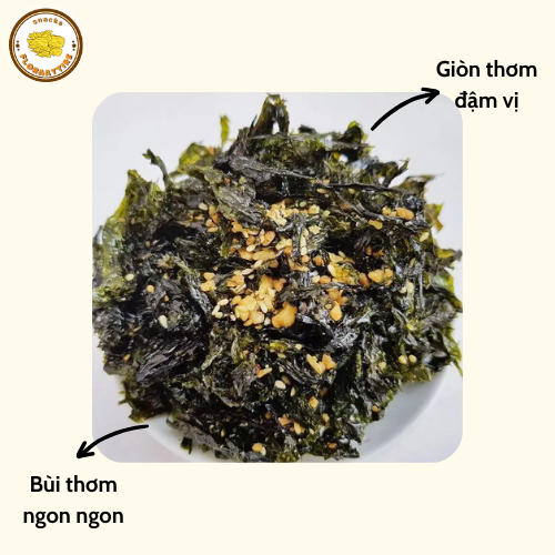 Rong biển cháy tỏi là món ăn vặt độc đáo với sự kết hợp tuyệt vời giữa rong biển giòn rụm và hương tỏi cháy thơm lừng. Rong biển giàu khoáng chất và vitamin, giúp bổ sung dinh dưỡng và tốt cho sức khỏe.