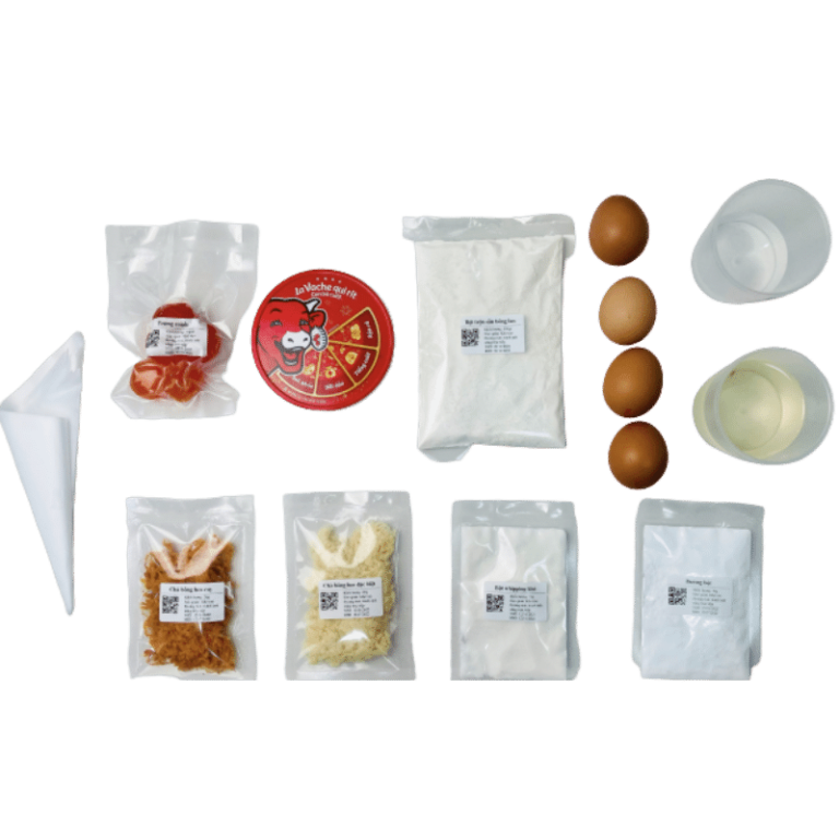 Trong combo này, chúng mình sử dụng bột bông lan trộn sẵn nên tỷ lệ thành công rất cao dù bạn là người mới bắt đầu làm bánh. Ngoài sốt dầu trứng, chúng mình sử dụng thêm phần sốt phô mai chua chua ngọt ngọt, form đứng và rất dễ tạo hình cho bán Nguyên liệu, thành phần:
