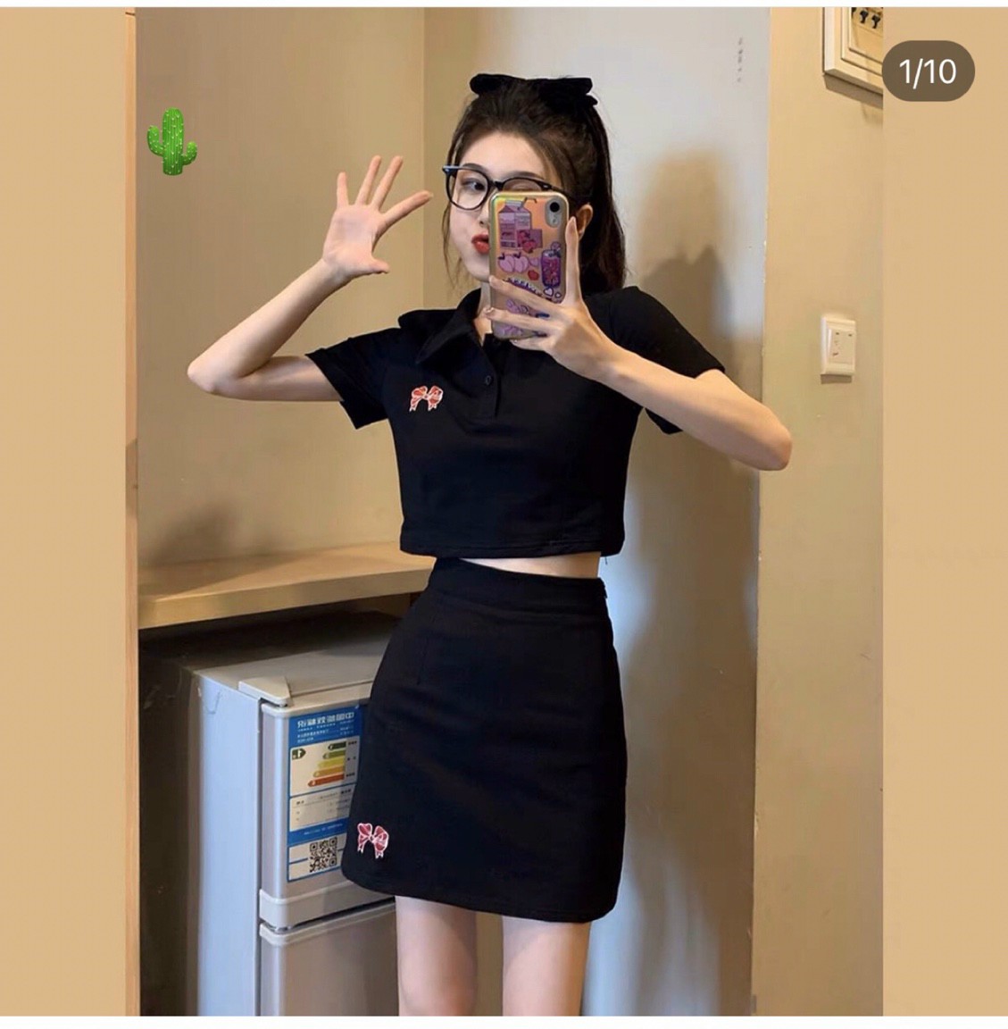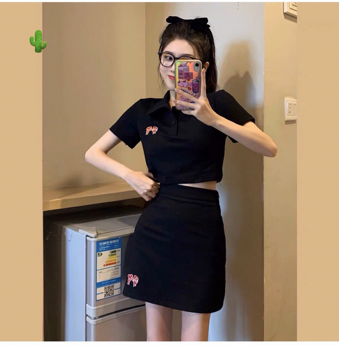 Set váy polo thêu nơ chất đẹp giá siêu rẻ PC
