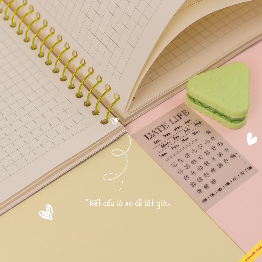Lò xo dễ lật giở và 2 mẫu bìa cứng màu pastel: Thiết kế sổ đề cao tính tiện ích cho học sinh khi sử dụng kết cấu lò xo giúp bạn mở phẳng, gập đôi dễ dàng. 2 mẫu bìa cứng, dày 1210 GSM giúp bảo vệ ruột sổ sau thời gian dài sử dụng. Màu bìa trẻ trung (xanh lá và tím) giúp tối giản hóa bộ sưu tập sổ vở và mang lại cảm hứng học tập cho teen.