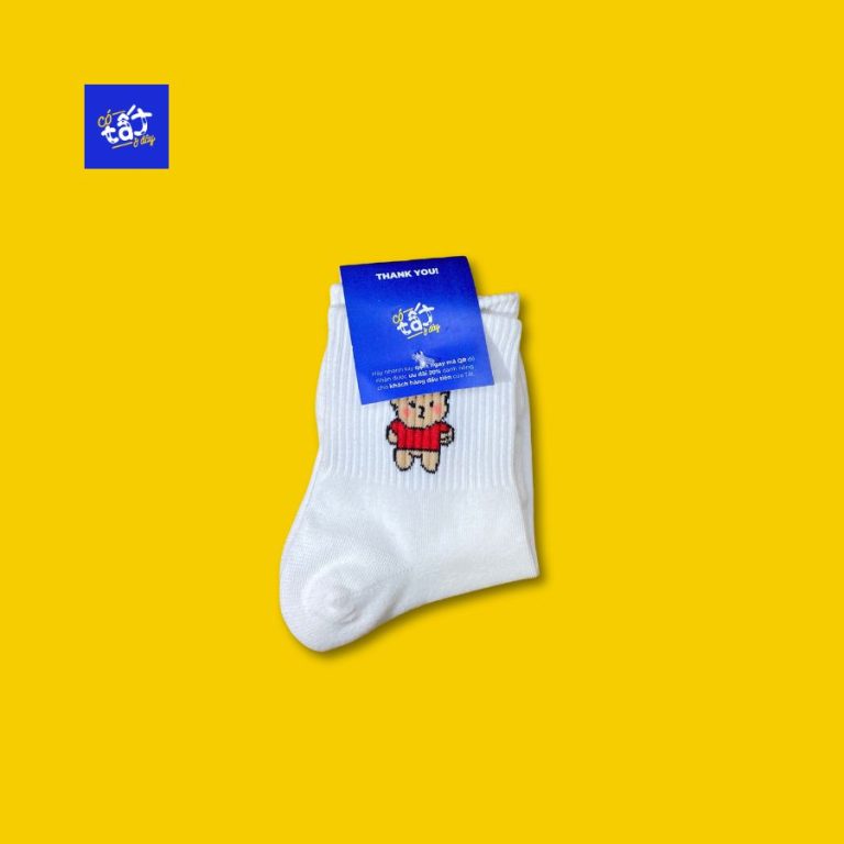 Vớ trắng họa tiết hình gấu là một sản phẩm tiện lợi và cần thiết cho mọi người. Sản phẩm được làm từ chất liệu cotton mềm mại, thoáng mát, thấm hút mồ hôi tốt, giúp bảo vệ đôi chân luôn khô thoáng, thoải mái trong mọi hoạt động. Họa tiết gấu ngộ nghĩnh, đáng yêu, giúp mọi người thêm hứng thú khi sử dụng. Đường may chắc chắn, tỉ mỉ, không gây khó chịu khi sử dụng.