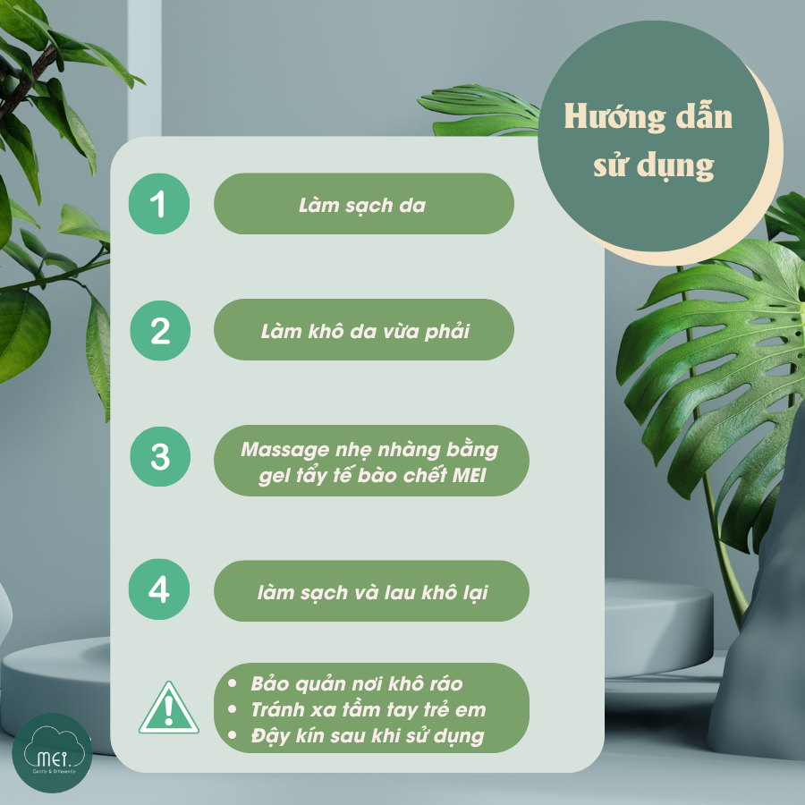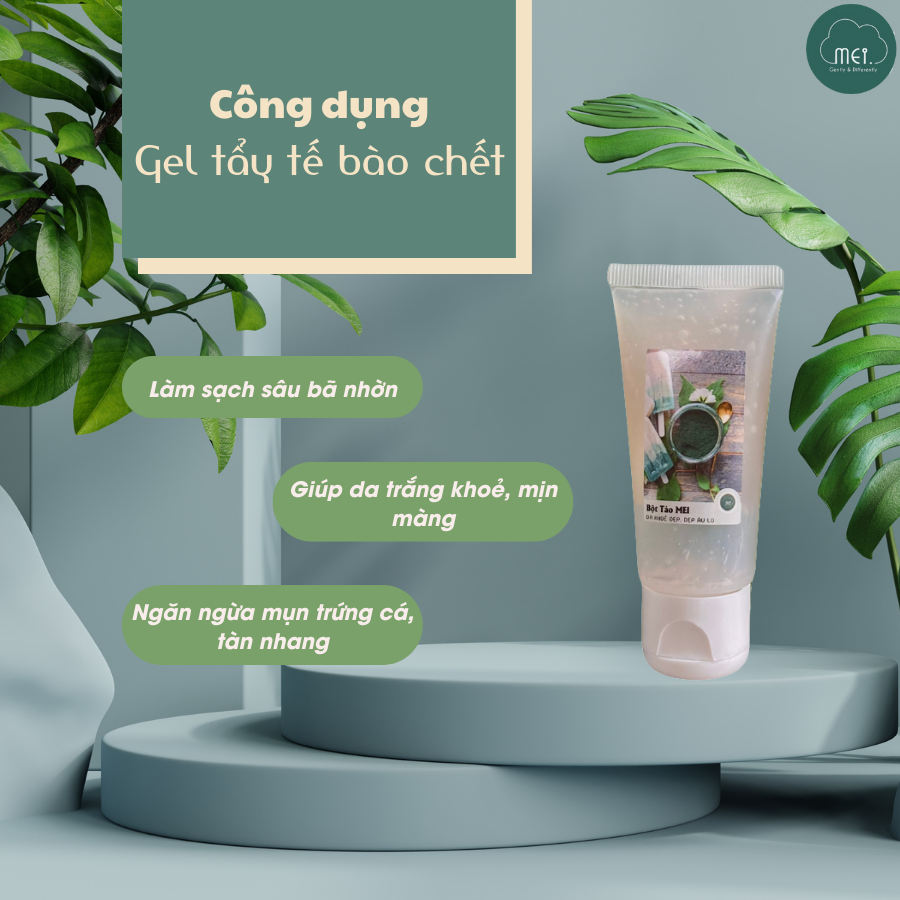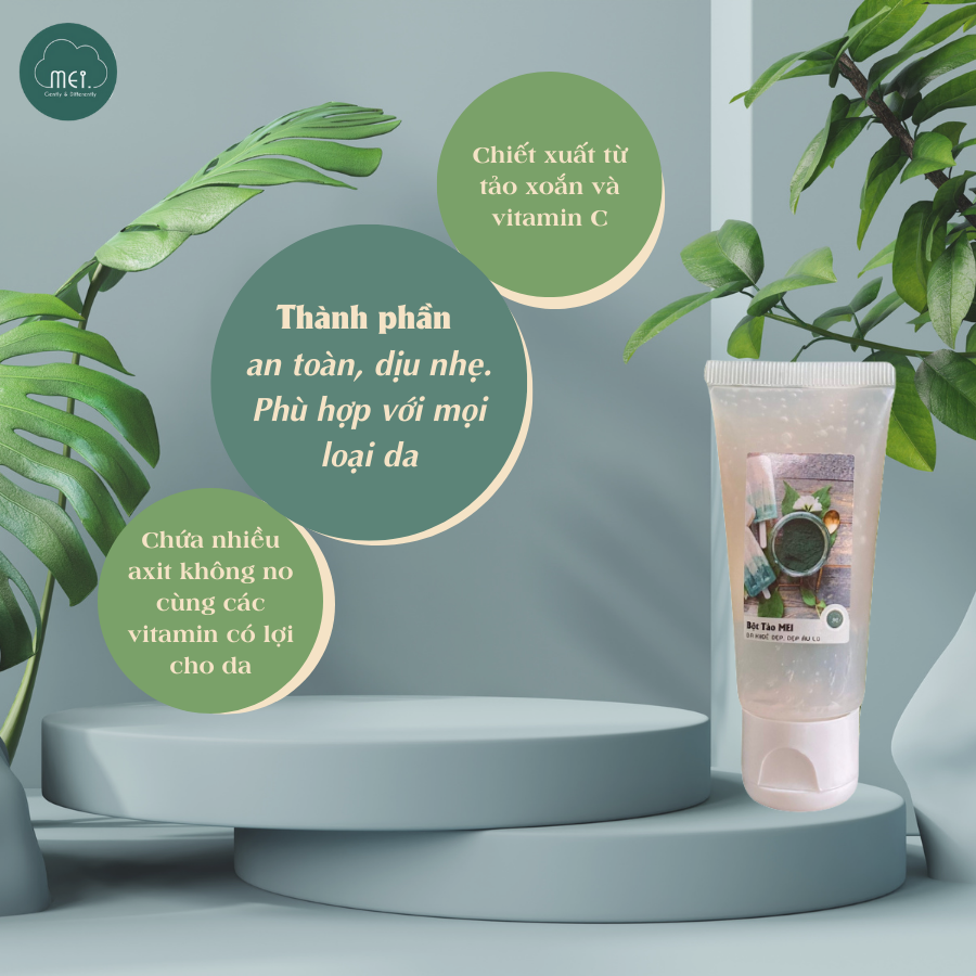 Tẩy Tế Bào Chết Tảo Xoắn MEI tuýp 30ml là một sản phẩm dạng gel với nguyên liệu chính là tảo xoắn và Vitamin C. Sản phẩm hỗ trợ tối ưu về da cho người sử dụng, nó có tác dụng giúp sạch da mụn đầu đen, sạch bã nhờn và các tế bào chết. Điều này làm cho da hấp thụ các dưỡng chất một cách tốt nhất, hỗ trợ cho các bước chăm sóc da sau đó.