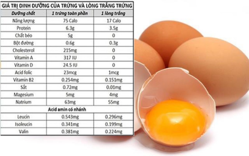 TRỨNG GÀ TA THẢ VƯỜN có nhiều chất dinh dưỡng, bao gồm vitamin, khoáng chất, axit amin so với hầu hết các loại thực phẩm khác. Một quả trứng có thành phần dinh dưỡng bao gồm: