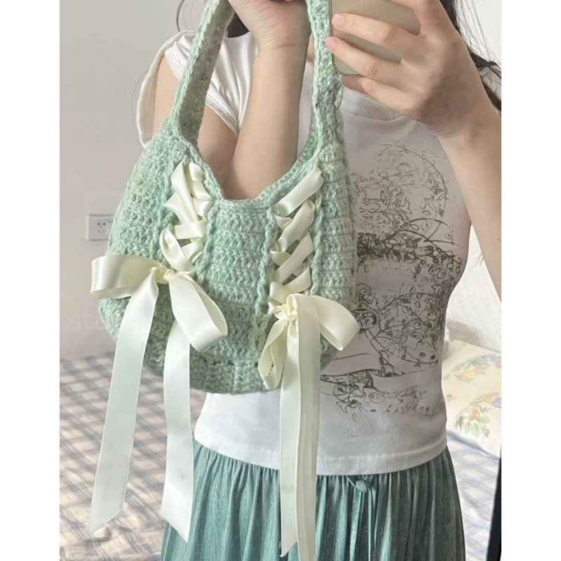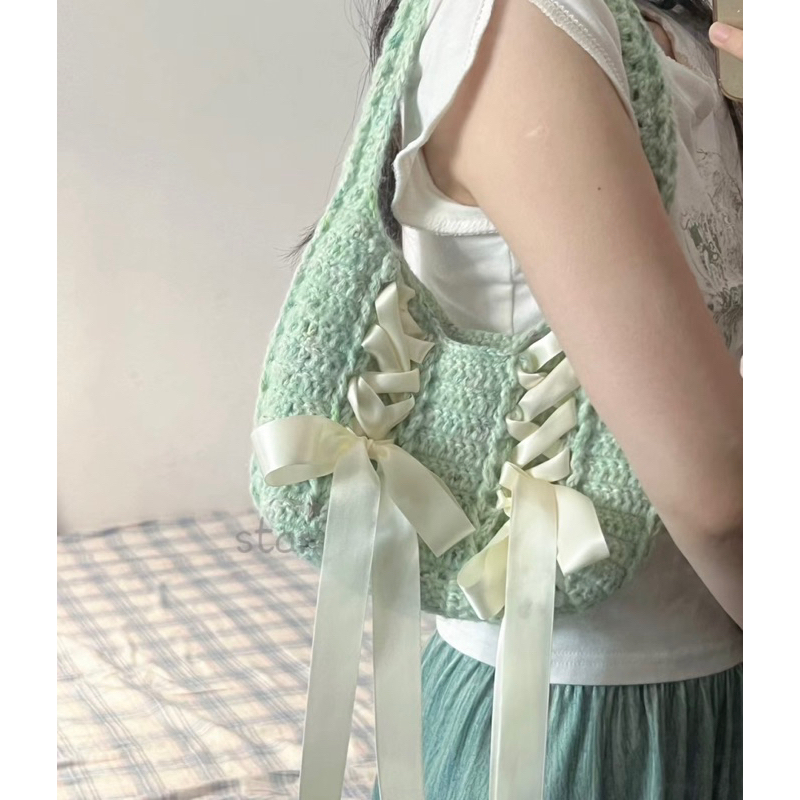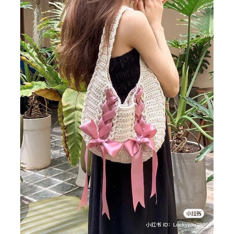 Túi Len Thắt Nơ Ruy Băng Màu Trắng