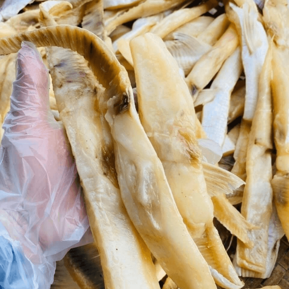 Ức mỡ khô cá dứa là phần ngon nhất của con cá dứa, được chế biến bằng phương pháp phơi khô truyền thống. Phần ức này thường chứa nhiều mỡ, tạo nên vị béo ngậy đặc trưng, kết hợp với thịt cá dứa chắc, thơm ngọt, mang đến một hương vị khó quên.
